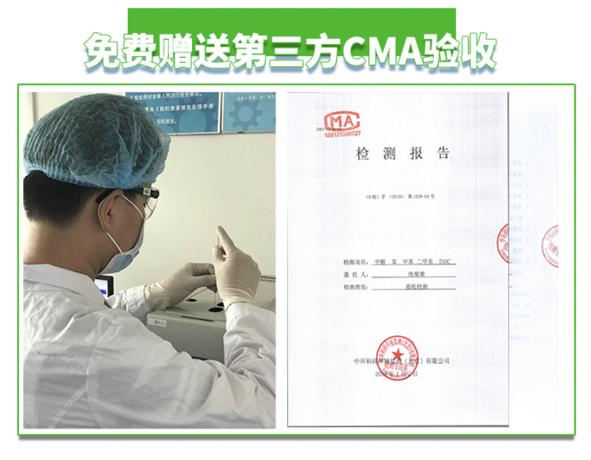 質(zhì)保包含免費上門檢測、贈送第三方CMA驗收